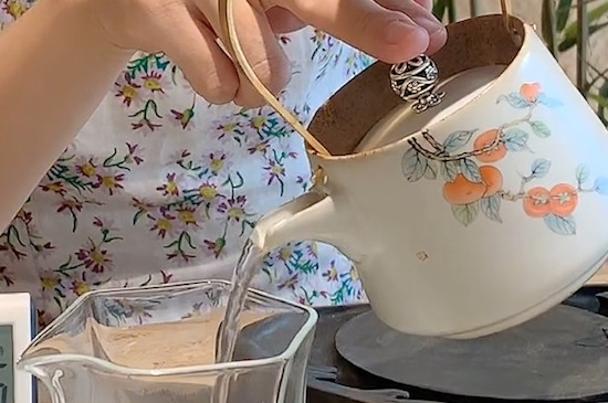 接下来把山泉水倒入紫砂壶里,将紫砂壶放在茶炉上烧开茶汤,等到茶汤烧开后,耐心等候5分钟左右的时间,提起紫砂壶,把茶汤缓缓注入茶杯中,就可以细品白茶的滋味了。
