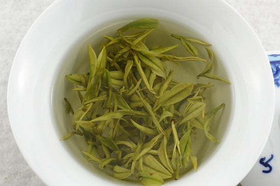 六安白茶并不是白茶,其外形比较像瓜子形的单片,挺直平展,叶缘部分稍微有一点卷曲,色泽翠绿,大小匀整,入泡后的汤色清澈明亮,滋味鲜醇清爽,堪称绿茶中的圣品。