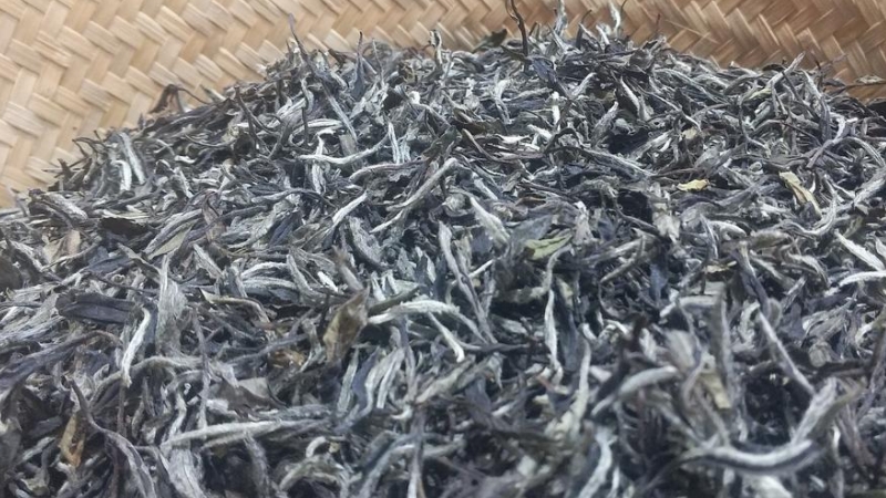 白茶的制作不需要经过杀青、揉捻,基本制作工序为晒青、萎凋、烘焙等,工序较为简单,制成的茶叶芽毫完整,保留了鲜叶的鲜香,制成的成品茶周身布满白毫。