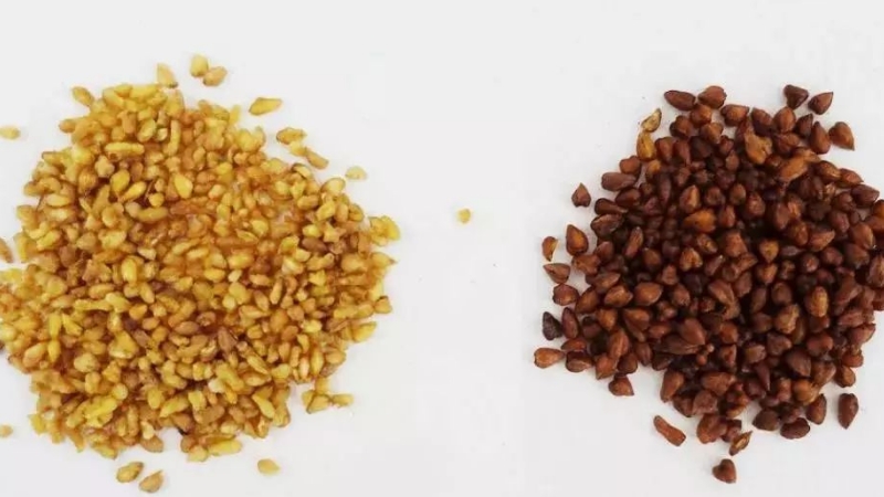 荞麦茶的外形是卵形的,颜色是暗褐色,而苦荞茶的外表是长卵形的,颜色呈黑褐色,通过外表特征,就可以很容易的区别出荞麦茶与苦荞茶了。