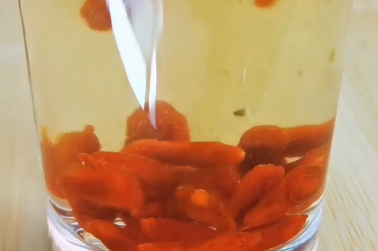 枸杞冲泡在15-20粒左右,准备适量的枸杞,投入玻璃杯中,然后注入3/1的沸水,静置3s左右倒掉,再次注入沸水至七分满,冲泡15分钟即可饮用。