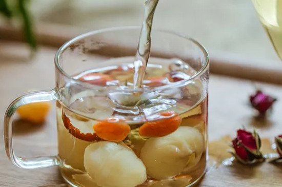 枸杞桂圆在泡水之前,先将枸杞和桂圆分别用温水清洗干净,之后将玻璃杯用沸水烫洗干净,投入枸杞和适量冰糖,注入刚烧开的沸水到玻璃杯的一半,5分钟后投入枸杞,倒入60℃的开水搅拌均匀即可饮用。