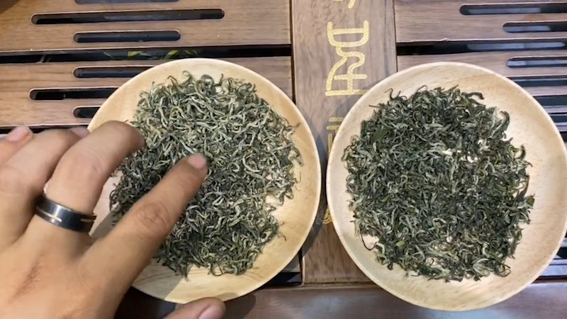 碧螺春是采摘质地鲜嫩的芽叶,经过杀青、揉捻、搓团显毫、炒青、炒制等工序制成,造就了碧螺春条索纤细、卷曲成螺、满身批毫、银绿隐翠、色泽鲜润的特点。