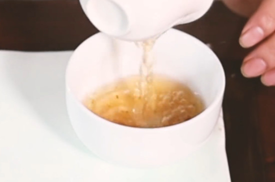接着取出紫砂杯,打开一包大红袍投入紫砂杯中,注入沸水冲泡,并用茶匙搅拌茶汤,5秒后倒掉茶汤,继续往紫砂杯中注入沸水,加盖焖泡5分钟后即可品饮。
