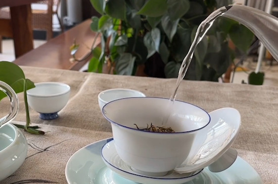 继续往盖碗中注入沸水,加盖焖泡5~7分钟后即可揭开碗盖,先细嗅尼泊尔红茶的香气,再观察尼泊尔红茶的茶汤,最后品饮尼泊尔红茶馥郁浓醇的滋味。