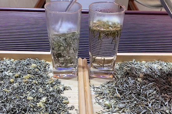 选茉莉花茶需闻香气,品质好的茉莉花茶冲泡后香气四溢,浓郁鲜活有灵性,仿若真正的茉莉花在绽放。品质差的茉莉花茶冲泡后有较为明显的杂味,或是香气浓过了头。