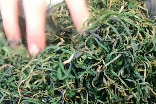 晾干后的蒲公英,需用刀将其切成小段,然后准备一口锅,将切好的蒲公英放入锅中,开小火进行翻炒,炒制时间在5分钟左右,等到蒲公英发黄、干枯时停火,并倒在篓子中冷却。