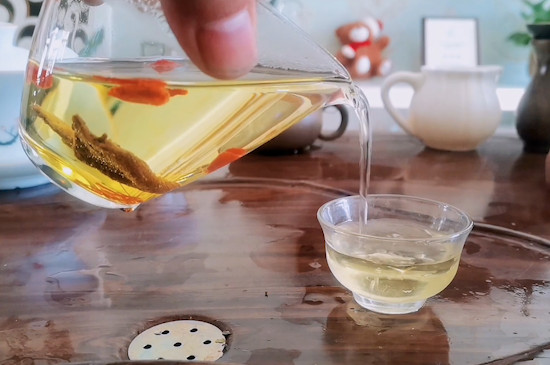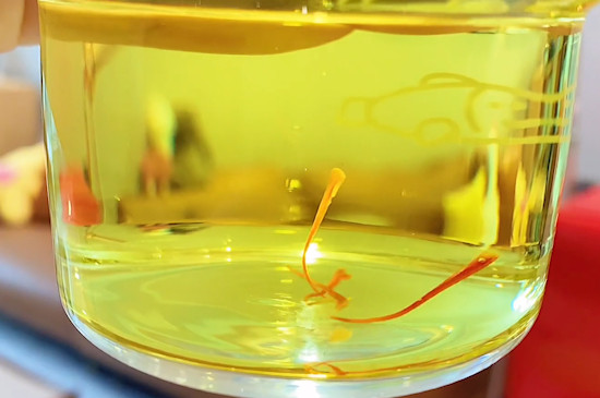 藏红花在冲泡时需一次泡5~10根,可连续冲泡4~5次,这正好是藏红花一天的量,冲泡时水量需控制在200ml左右。藏红花冲泡时,先将玻璃杯烫洗干净,再将藏红花投入玻璃杯中,注入开水冲泡,5秒后倒掉茶汤,继续注入开水冲泡。