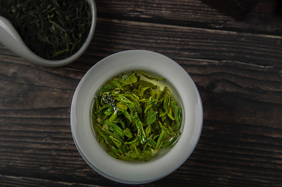 西湖龙井产于浙江杭州西湖周围群山,采摘要早,选取细嫩的茶叶采摘,制成的成品茶呈扁平状,光滑挺直,颜色翠绿,有光泽,含有丰富的氨基酸、叶绿素等物质。