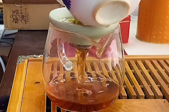 普洱熟茶冲泡后,入口香馥,甜香浓郁,并夹杂着陈香、药香、糯香、荷香、枣香等持久不衰的香气,滋味醇厚爽滑、粘稠细腻、茶汤厚实饱满、甜醇回甘,让人满口生津。