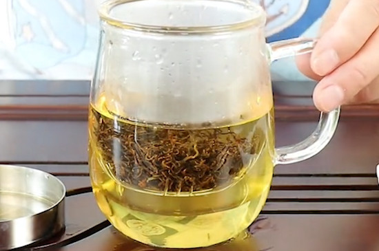 祁门红茶冲泡后汤色红艳明亮,叶底绝大部分是嫩芽叶,呈鲜艳的红色,拥有独有的“祁红”风格,品质越好的祁门红茶,茶汤就显得越通透,反之祁门红茶在冲泡后会出现杂色。