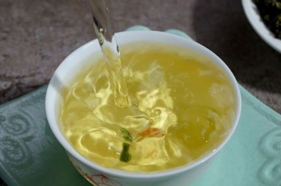 往盖碗中投入8g冻顶乌龙茶,注入95-100度热水。冻顶乌龙属于半发酵茶,滋味醇厚,香气浓郁,高水温才能充分释放其香气与滋味,水温不宜过高,并且尽量保持每一泡的水温都不能低。