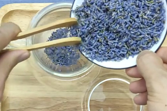 春夏适合喝薰衣草茶,把玻璃杯用刚烧开的沸水烫洗干净,用茶匙将4~6g薰衣草茶投入玻璃杯里,注入85~90℃的开水冲泡,1分钟后即可品饮。