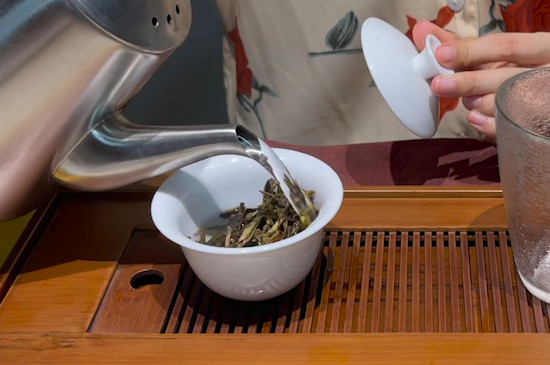 夏天适合喝白茶,用茶匙将4~6g白茶投入已经用沸水烫洗干净的玻璃杯中,注入90~95℃的开水冲泡,5秒后倒掉茶汤,继续往玻璃杯中注入开水,3分钟后品饮。