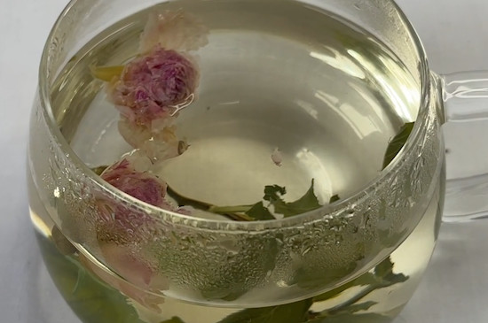 夏天适合喝玫瑰花茶,先将玻璃杯用沸水烫洗干净,再用茶匙将3~5g玫瑰花茶投入玻璃杯中,注入80~85℃的开水冲泡,3秒后倒掉茶汤,继续注入开水,1分钟饮用。