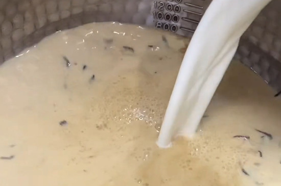 茶叶和糖炒好以后,直接倒入100-200毫升的清水焖煮,等水烧制翻滚以后,再加入200毫升的牛奶,若是喜欢浓郁的奶味,可以放入500克,奶香味更重。