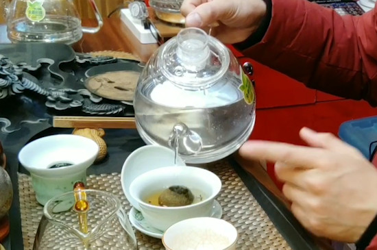 小青柑投放之后,准备一壶烧开的沸水,一手提起水壶,沿着盖碗边缘匀速、定点注水,直到水完全将小青柑淹没住为止,然后盖上盖子闷泡30-40秒,使普洱茶的香味充分浸出,等茶汤褐红时即可饮用。