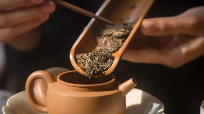 紫砂壶透气性好,保温性佳,适合冲泡普洱熟茶。用水以ph较高的矿泉水为宜,水温宜高不宜低,水温低了茶味会变淡,连续高温的浸泡是继发普洱熟茶陈香的不二法门。