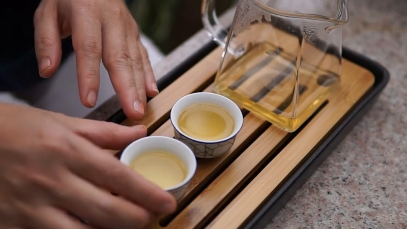 温具后还需要润茶1-2道,投茶5-10g,而后注水冲泡。需要快水猛冲,让茶叶在壶内翻腾激荡,充分与水摩擦,这样能够让茶汤高香。或者让水流在一个点上稳定而缓慢地注入,这样可以让茶汤绵密柔软。