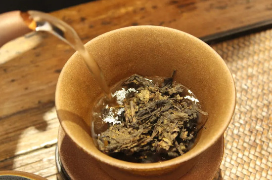 如果是粗老的茯茶时,就可以适当少放一些,加水焖泡20秒左右后,用茶盖刮去表面浮沫,将茶汤倒在公道杯里,茶量保持在杯子的三分之一处为宜,先慢慢闻杯口里的香味,再小口慢慢饮入。