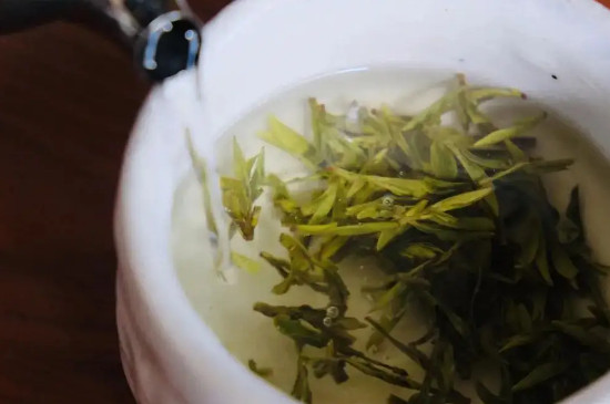 西湖龙井的茶水冲泡比例一般是1:60,可以根据个人对茶汤浓淡喜好,调整茶水冲泡比例。倒入少量开水,晃动茶杯,将茶叶浸湿,使茶叶更好的散发茶香,再倒入开水,泡茶的时候,茶壶要沿着杯壁缓缓倒入,饮用时留一部分茶水在杯中以便多次冲泡。