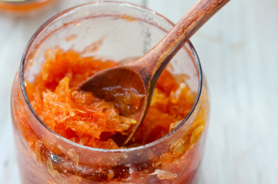 最后就可以在锅中加入适量的水,然后在加入冰糖和柚子皮一起熬煮,等到水开后往其中加入柚子果肉一起煮,将其彻底煮开后,在开小火慢慢熬制浓稠状,等到冷却后往里加入蜂蜜即可。
