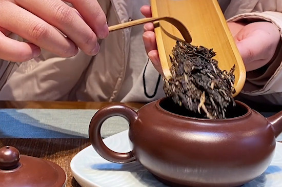 接着将5~7g茶叶用茶匙拨入茶壶中,冲入适合茶叶温度的开水,并用茶匙搅拌几下,5秒后将茶汤倒掉,若是紧压茶或陈年老茶,则需洗2~3道茶。