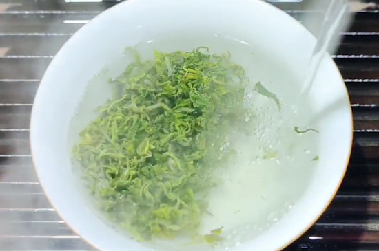 明前茶叶内质十分丰富,水浸出物含量高,因此导致明前茶叶冲泡后色泽绿润,叶底如花成朵,并散发着清香或熟栗香味,品饮后苦涩度低,香高味醇。