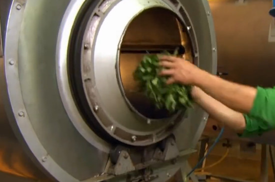 人参乌龙茶揉捻之后,将其放入烘焙机器中,接通电源开始烘制,期间需不定时的翻动,以防茶叶焦糊,直至人参乌龙茶可以用手折断时停止烘焙,有利于茶味更加醇厚。