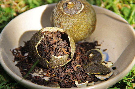小青柑又称柑普茶,是小青柑普洱茶的简称,属于再加工茶,是大红柑或小青柑和云南普洱茶为原料制作而成的一款茶。将新会柑顶部开一个洞,将普洱茶塞入柑中,经过干燥后,便制成小青柑。