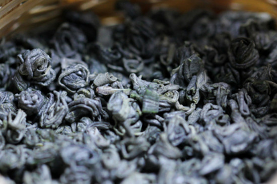 泉岗辉白经过杀青、初揉、初烘、复烘、炒二青。辉锅六道工序,辉锅是形成泉岗辉白外形特征的关键工序,用双手轻轻推炒,一直炒到茶叶慢慢盘卷弯曲,表面慢慢泛起白霜。