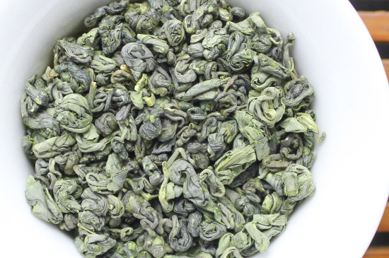 泉岗辉白属于绿茶,是中国圆形绿茶中的珍品,产于嵊州卮山,茶叶采摘时间一般在谷雨前后,选取一芽二叶,或一芽三叶初展的鲜叶作为制作原料,经过杀青、初揉、初烘、复烘等六道工序制作而成,制成的茶叶似圆非圆,大小均匀紧结,茶色翠绿带有白霜。