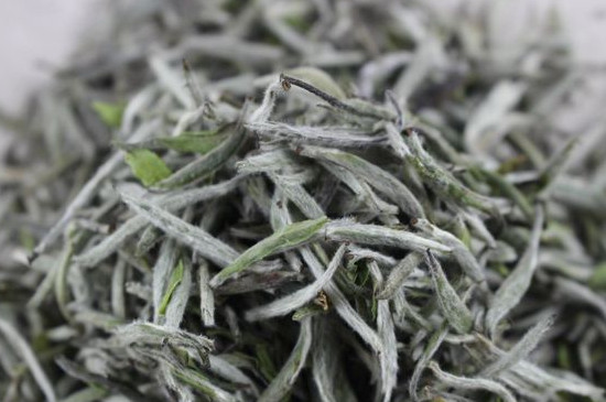 白茶选用玉白色一芽一叶初展的鲜叶为制作原料,鲜叶要完整均匀,茶柄要短小。制成的成品茶外观呈白色,周身布满白毫,冲泡后的茶汤,黄绿透亮,口感较为清淡,入口回甘。