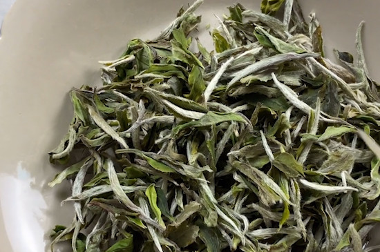 白牡丹茶属于白茶,产于福建各地,是选用毫芽肥壮洁白的一芽二叶春茶,薄薄的摊放在竹席上,并置于微弱的阳光下或通风透光效果好的室内进行自然萎调,等到茶叶晾晒至七八成干时,再用焙笼以30~40℃文火焙至足干制成的。