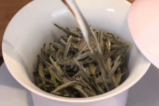 白毫银针在冲泡时,先将玻璃杯用沸水烫洗干净,再将4~6g白毫银针投入玻璃杯中,注入90~100℃的沸水冲泡,并在5秒后倒掉茶汤,继续冲泡,耐心等候5分钟的时间即可饮用。