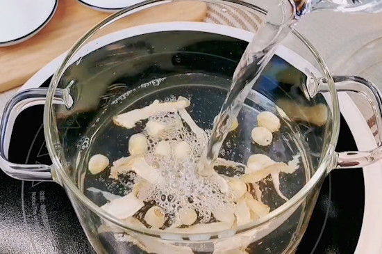 百合茶可以搭配西洋参冲泡,将玻璃杯烫洗干净后,把5g百合茶、1g西洋参、3g枸杞、1g竹叶投入玻璃杯中,注入85~90℃的开水,加盖焖泡10分钟后饮用。