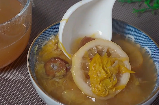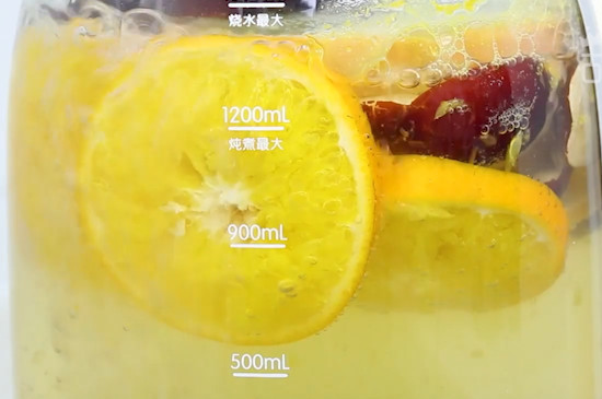 接下来把已经切片的柠檬、芒果、苹果放入几片到玻璃杯里,并添加250ml茉莉绿茶、30g百香果、60g果酱、30ml蜂蜜、10ml糖浆、150g冰块搅拌均匀,最后插上吸管即可饮用。