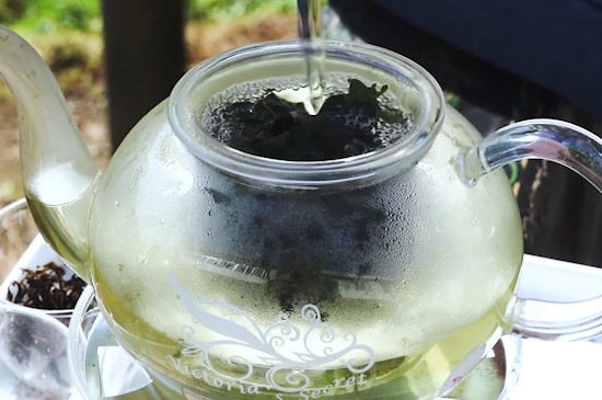 接着取出玻璃杯,用茶匙将4~6g苦丁茶投入玻璃杯中,注入沸水,加盖焖泡15~20分钟,等到苦丁茶完全泡开后,揭开苦丁茶,品饮苦丁茶的滋味即可。