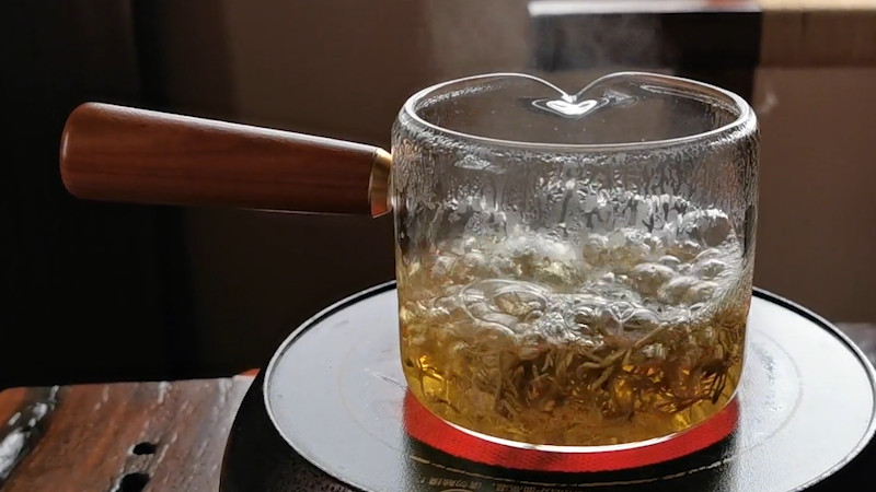 莓茶冲泡时需倒掉第1泡茶汤,能够去除莓茶中的杂质,也是为了保证莓茶的香气、口感、滋味,更重要的是为了唤醒莓茶的内质,让莓茶中的黄酮在冲泡时得以尽数析出。莓茶冲泡时,需用刚烧开的沸水才行。