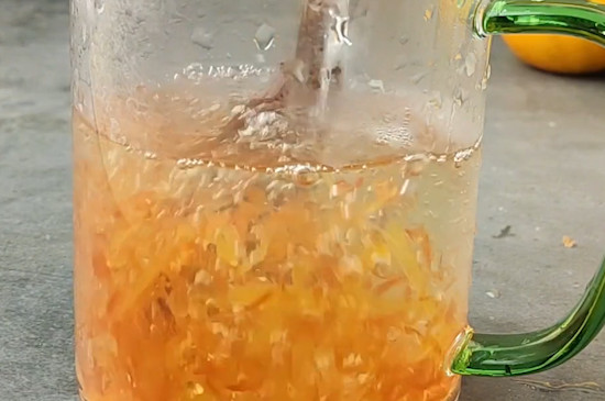 蜂蜜柚子茶在制作时,先将柚子用清水洗净,并用盐将柚子表面的蜡质揉搓干净。之后将柚子皮剥下,去除里面白色的瓤,把柚子皮切丝或切成小块,随后在容器中倒入清水,撒入少许盐,将切好的柚子皮放入盐水中浸泡10分钟。