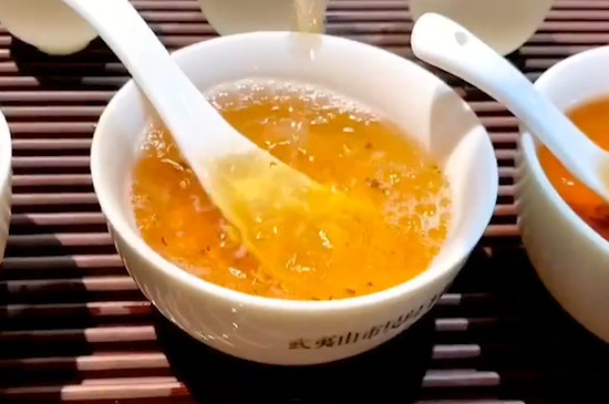 大红袍的工艺着实精细,因此造就了其茶形紧结匀整、茶芽壮实稍扭曲、色泽油润带宝色的品质特点,冲泡后的大红袍汤色清澈艳丽,呈深橙黄色,叶底软亮匀齐,红边或带朱砂色,香气清锐浓长,幽幽清远,滋味岩韵明显醇厚,固味甘爽,饮毕杯底有香气。