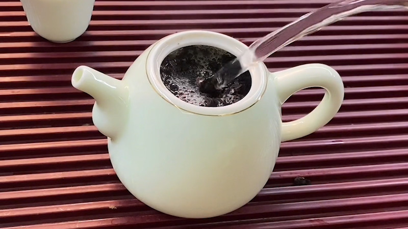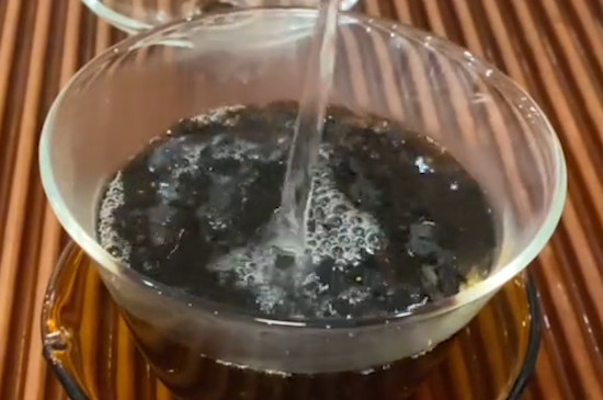 接着用茶匙将5~8g大红袍投入紫砂壶中,注入沸水冲泡,并用茶匙快速搅拌茶汤,5秒后倒掉茶汤。随后继续往紫砂壶中注入沸水,盖上壶盖焖泡,耐心等候5分钟的时间即可饮用。
