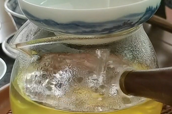 大红袍在冲泡时,先将盖碗放入茶洗中,揭开碗盖,注入沸水,再盖上碗盖,用沸水浇淋盖碗。或将盖碗放入玻璃茶洗中,倒入清水,置于电磁炉上将茶洗中的清水烧开。