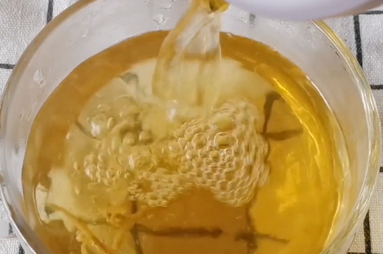 金银花茶冲泡后,茶汤呈淡黄色,由于花茶中含有大量的绿原酸,溶于水后会变成绿色,因而金银花茶泡3-6小时以上时,茶汤就由淡黄色慢慢向墨绿色转变,且浸泡时间越久,色泽越深。