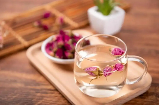 在冲泡玫瑰花茶时,取茶量5朵即可,浸润后的花苞伸展后体积较大,冲泡水温控制在85℃更加适宜,注水至七分满停止,静置3分钟即可饮用,同时还可以加入枸杞一同配饮。