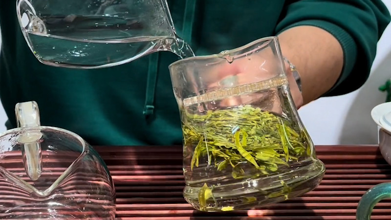 虎跑龙井指的是产于西湖虎跑寺的龙井茶,是采摘一芽一叶的嫩芽制成的,具有嫩绿鲜润、匀整重实、芽峰显露的特点,冲泡后茶汤嫩绿鲜亮、芽叶嫩幼嫩成朵、滋味清鲜味醇。