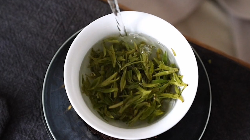 龙井茶有两种泡法,一种方法是先将玻璃杯用沸水烫洗干净,再将玻璃杯取出,用茶匙投入3~5g龙井茶,注入80~85℃的开水冲泡,1~2分钟后就可以直接饮用了。