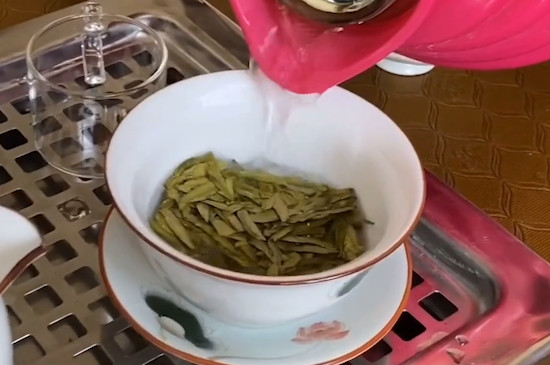 狮峰龙井具有茶形扁平光滑、苗锋尖削、芽长于叶、色泽嫩绿、体表无茸毛的特点,冲泡后汤色嫩黄明亮,叶底嫩绿尚完整,带有清香、栗香、高火香气,滋味鲜爽味醇。