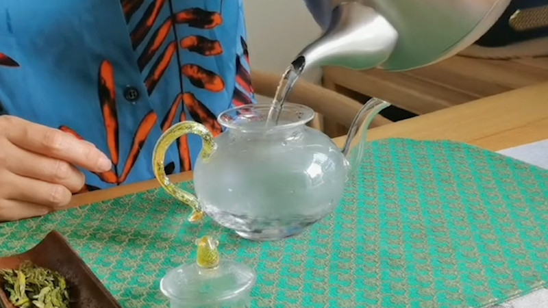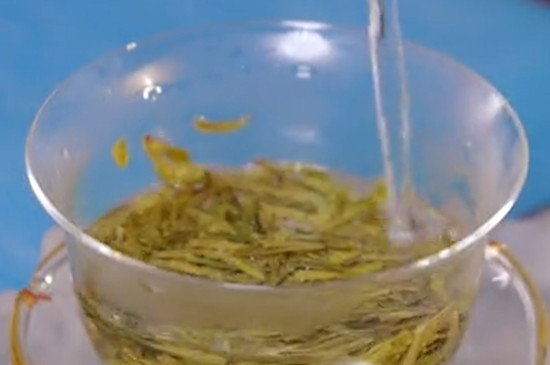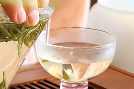 继续往玻璃杯中注入开水冲泡龙井茶,1~2分钟后端起茶杯,品饮龙井茶清香馥郁的滋味,若是把泡好的龙井茶放入冰箱中冷藏2小时,口感会更加鲜爽。