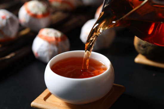 普洱熟茶以醇滑的滋味著称,与柑皮更能相得益彰,并且在选择熟茶时,以颗粒较细并且陈化时间三年以上的陈茶为茶料,避免难以填入柑皮之中,同时防止熟茶新茶散发的堆味对于整体口感的影响。